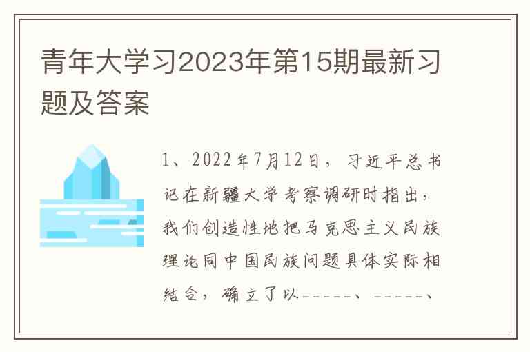 4、2022年7月12日,习近平总书记在新疆大学考察调研时指出,希望同学们做为_____、为_____努力奋斗的一代青年。