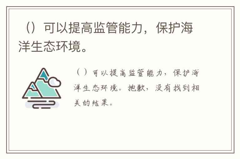()可以提高监管能力,保护海洋生态环境。