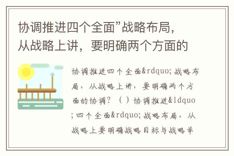 协调推进四个全面”战略布局,从战略上讲,要明确两个方面的协调?()