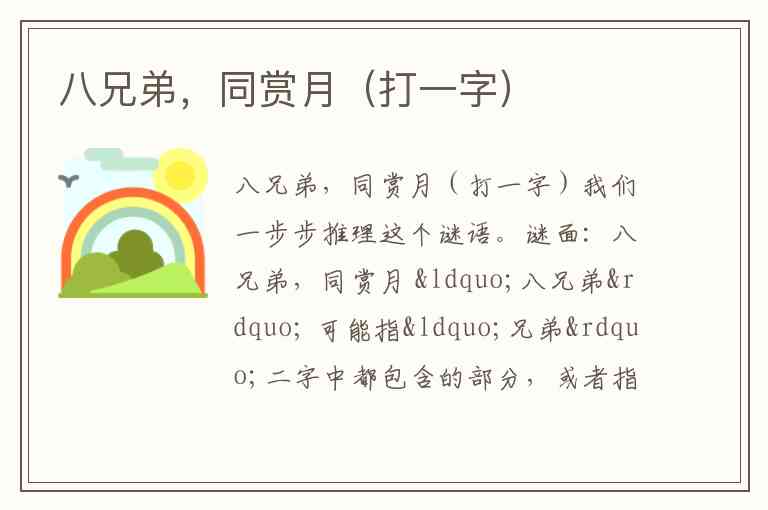 谜面:八兄弟,同赏月 “八兄弟” 可能指“兄弟”二字中都包含的部分,或者指“八”和“兄弟”的关系。