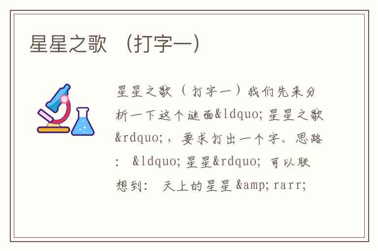 我们先来分析一下这个谜面“星星之歌”,要求打出一个字。