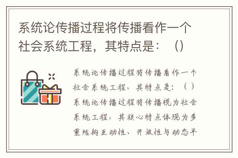 系统论传播过程将传播看作一个社会系统工程,其特点是:()