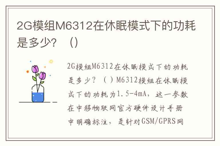 M6312模组在休眠模式下的功耗为1.5-4mA,这一参数在中移物联网官方硬件设计手册中明确标注,是针对GSM/GPRS网络优化的低功耗表现。该数值处于2G物联网模组的典型功耗区间,既满足远程设备的续航需求,又能维持网络注册状态以便快速唤醒。