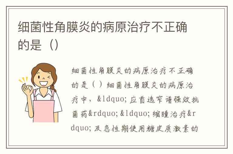 细菌性角膜炎的病原治疗中,“应首选窄谱强效抗菌药”“缩瞳治疗”及急性期使用糖皮质激素的说法均不正确,这些错误做法可能导致病情延误或加重。