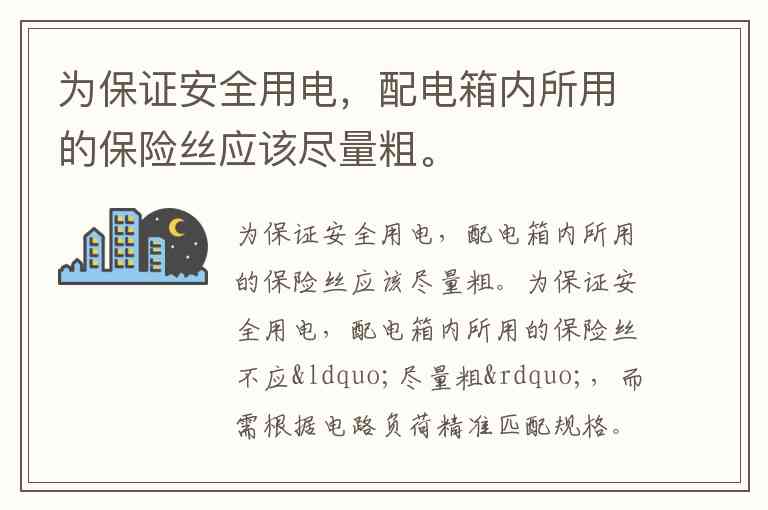 为保证安全用电,配电箱内所用的保险丝应该尽量粗。