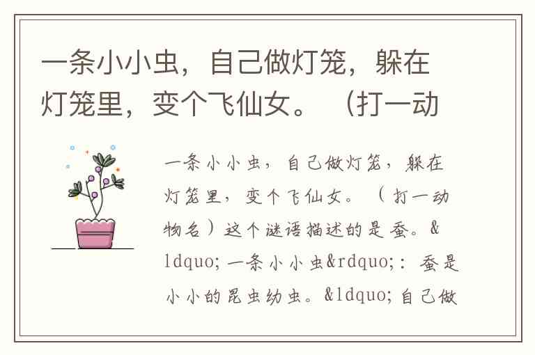 一条小小虫,自己做灯笼,躲在灯笼里,变个飞仙女。 (打一动物名)