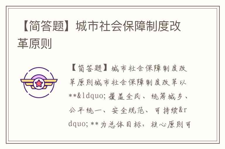 城市社会保障制度改革以**“覆盖全民、统筹城乡、公平统一、安全规范、可持续”**为总体目标,核心原则可概括为以下五大维度,这些原则既立足当前人口老龄化、就业方式多样化等现实挑战,又着眼于制度的长远可持续发展。