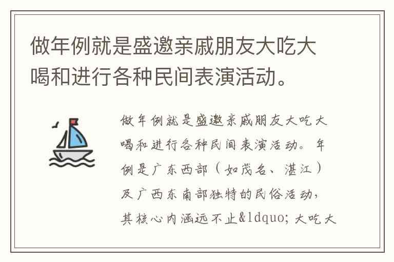 做年例就是盛邀亲戚朋友大吃大喝和进行各种民间表演活动。