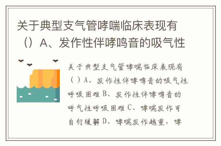 典型支气管哮喘的核心临床表现为发作性伴哮鸣音的呼气性呼吸困难(B) 和部分患者哮喘发作可自行缓解(C)。这两项特征与气道痉挛的病理生理机制直接相关,而吸气性呼吸困难(A)和“哮鸣音强度与病情正相关”(D)则存在关键认知误区。