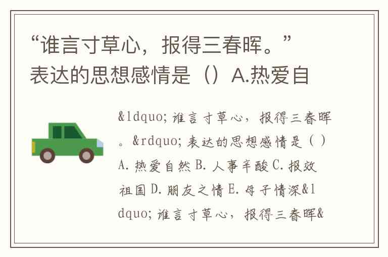 “谁言寸草心,报得三春晖。”表达的思想感情是()A.热爱自然 B.人事辛酸 C.报效祖国 D.朋友之情 E.母子情深