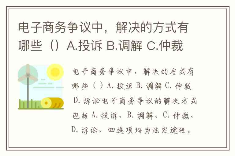 电子商务争议中,解决的方式有哪些()A.投诉 B.调解 C.仲裁 D.诉讼