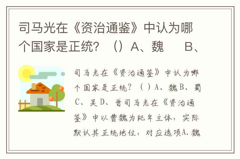 司马光在《资治通鉴》中认为哪个国家是正统?()A、魏 B、蜀 C、吴 D、晋