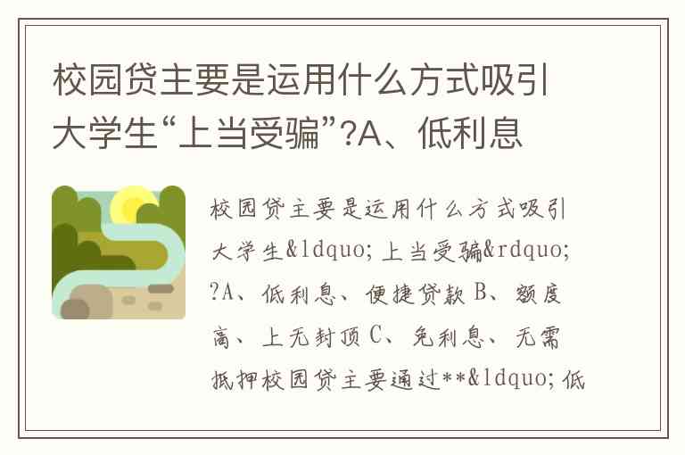 校园贷主要是运用什么方式吸引大学生“上当受骗”?A、低利息、便捷贷款 B、额度高、上无封顶 C、免利息、无需抵押
