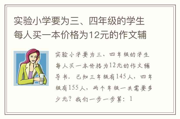 实验小学要为三、四年级的学生每人买一本价格为12元的作文辅导书.已知三年级有145人,四年级有155人,两个年级一共需要多少元?