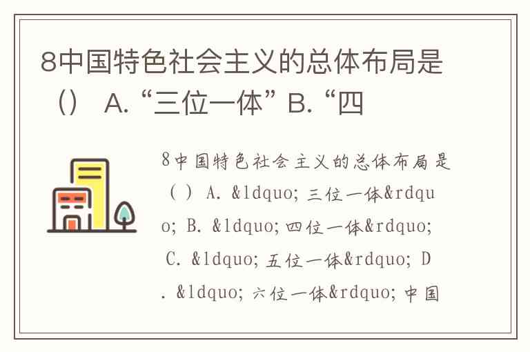 8中国特色社会主义的总体布局是() A. “三位一体” B. “四位一体” C. “五位一体” D. “六位一体”