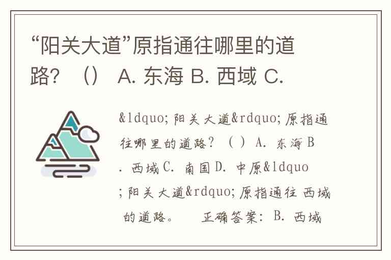 “阳关大道”原指通往哪里的道路?() A. 东海 B. 西域 C. 南国 D. 中原