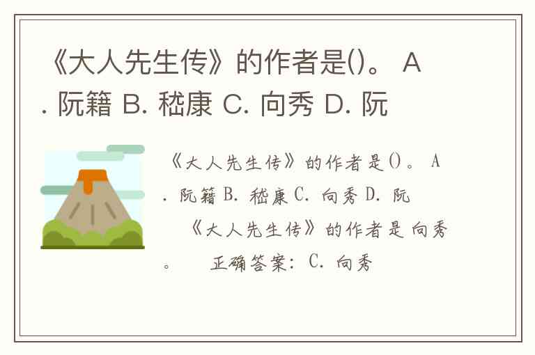 《大人先生传》的作者是()。 A. 阮籍 B. 嵇康 C. 向秀 D. 阮瑀