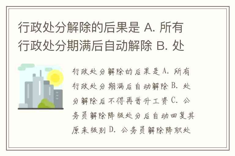 行政处分解除的后果是 A. 所有行政处分期满后自动解除 B. 处分解除后不得再晋升工资 C. 公务员解除降级处分后自动回复其原来级别 D. 公务员解除降职处分后不得回复原来职务