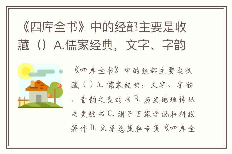 《四库全书》中的经部主要是收藏()A.儒家经典,文字、字韵、音韵之类的书 B.历史地理传记之类的书 C.诸子百家学说和科技著作 D.文学总集和专集