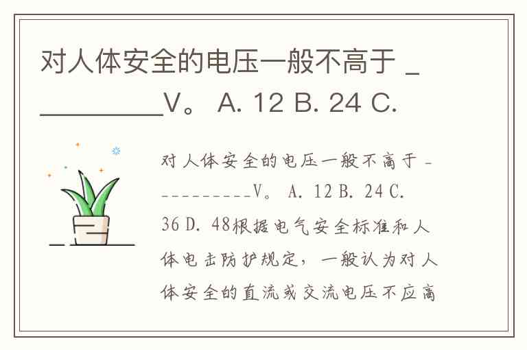对人体安全的电压一般不高于 __________V。 A. 12 B. 24 C. 36 D. 48