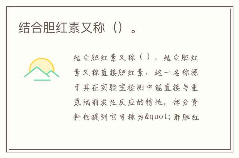 结合胆红素又称直接胆红素,这一名称源于其在实验室检测中能直接与重氮试剂发生反应的特性。部分资料也提到它可称为"肝胆红素",强调其在肝脏内的代谢起源。