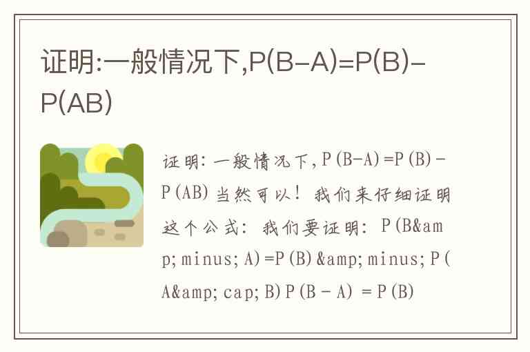 证明:一般情况下,P(B-A)=P(B)-P(AB)