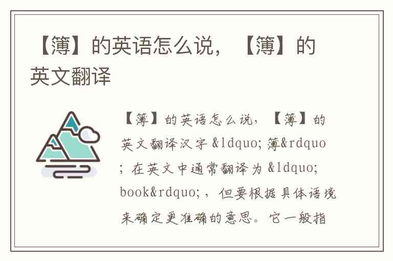 如果你愿意,我可以帮你整理一个 “簿”的常见类型和对应英文对照表,非常实用。你想让我整理吗?