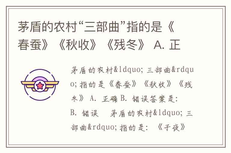 茅盾的农村“三部曲”指的是《春蚕》《秋收》《残冬》 A. 正确 B. 错误