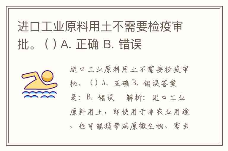 进口工业原料用土不需要检疫审批。 ( ) A. 正确 B. 错误