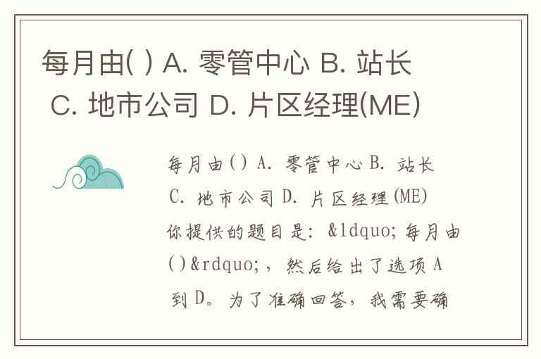 你提供的题目是:“每月由( )”,然后给出了选项 A 到 D。为了准确回答,我需要确认一下上下文:你是问每月由谁负责汇报、考核还是管理某项工作吗?不同内容对应的答案可能不同。