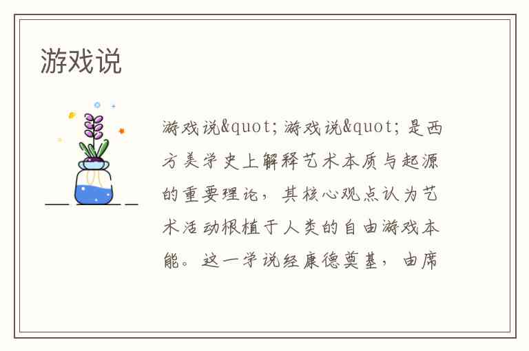 "游戏说"是西方美学史上解释艺术本质与起源的重要理论,其核心观点认为艺术活动根植于人类的自由游戏本能。这一学说经康德奠基,由席勒系统阐述,后经斯宾塞、伽达默尔等哲学家发展,形成了跨越三个世纪的思想脉络。