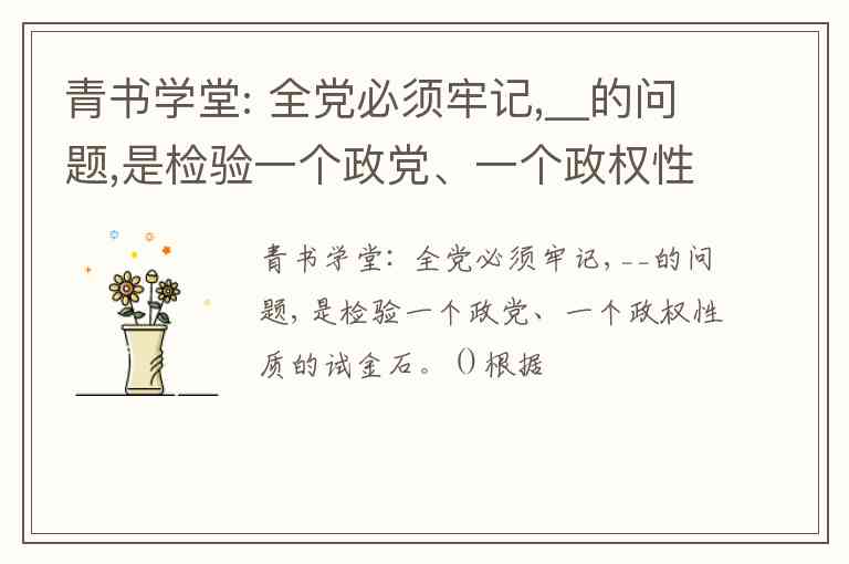 青书学堂: 全党必须牢记,__的问题,是检验一个政党、一个政权性质的试金石。()