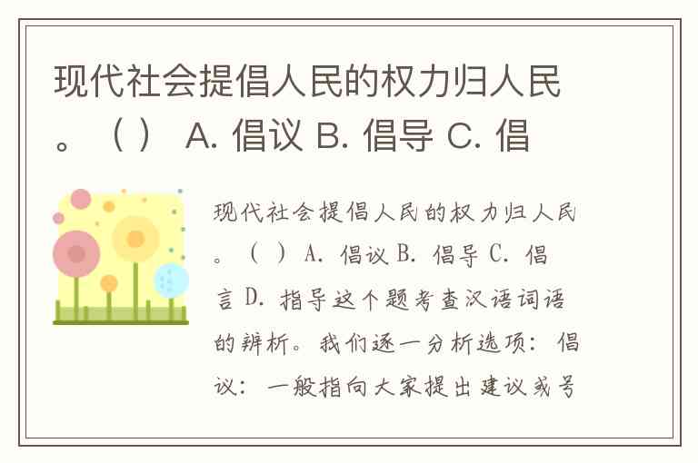 现代社会提倡人民的权力归人民。( ) A. 倡议 B. 倡导 C. 倡言 D. 指导