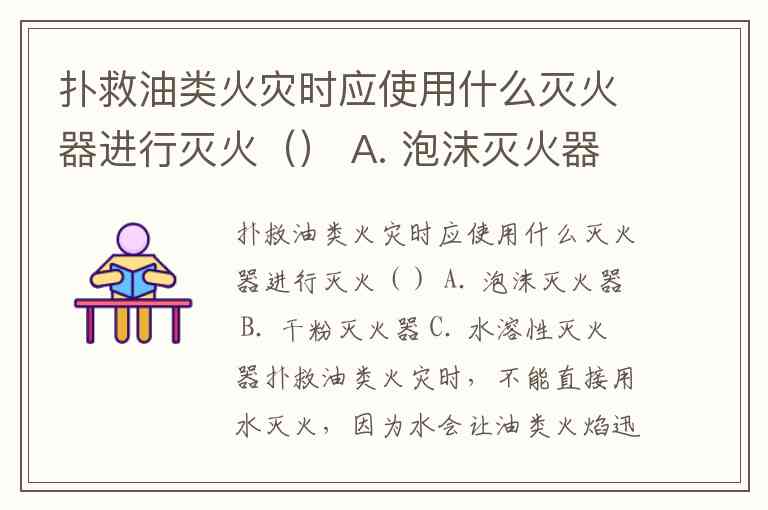 扑救油类火灾时应使用什么灭火器进行灭火() A. 泡沫灭火器 B. 干粉灭火器 C. 水溶性灭火器