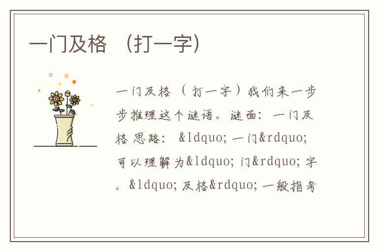 谜面:一门及格 思路: “一门”可以理解为“门”字。