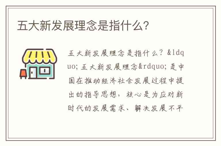 “五大新发展理念”是中国在推动经济社会发展过程中提出的指导思想,核心是为应对新时代的发展需求、解决发展不平衡不充分问题而提出的战略方针。具体内容包括 创新、协调、绿色、开放、共享 五个方面: