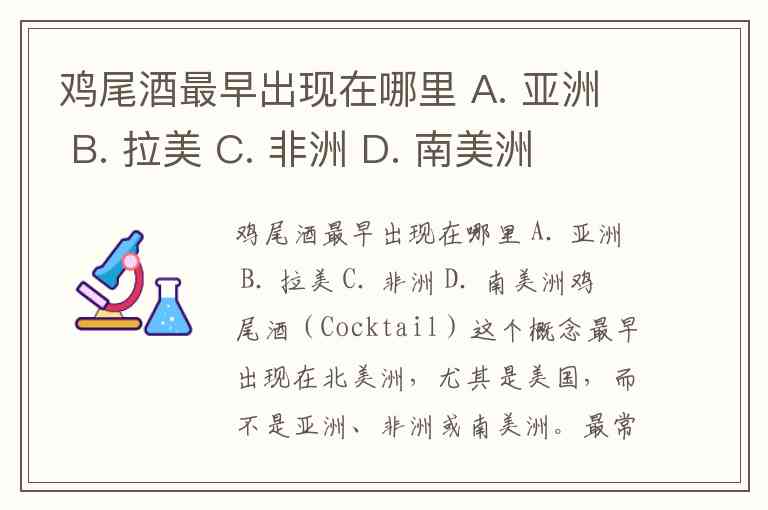所以,在你提供的选项里,其实都不准确,因为鸡尾酒起源于北美洲(美国),而不是亚洲、拉美、非洲或南美洲。