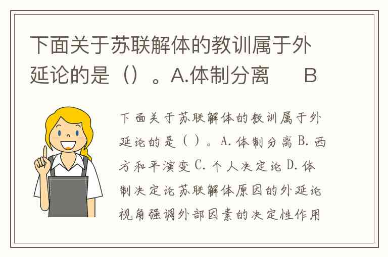 下面关于苏联解体的教训属于外延论的是()。A.体制分离 B.西方和平演变 C.个人决定论 D.体制决定论