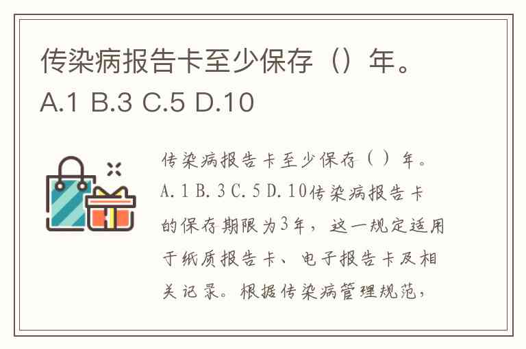 传染病报告卡至少保存()年。A.1 B.3 C.5 D.10