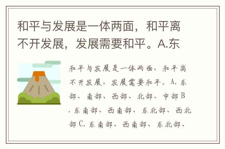 和平与发展是一体两面,和平离不开发展,发展需要和平。A.东部、南部、西部、北部、中部 B.东南部、西南部、东北部、西北部 C.东南部、西南部、东北部、西北部、中部 D.东部、南部、西部、北部