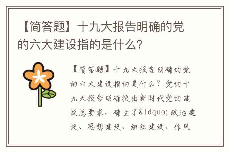 【简答题】十九大报告明确的党的六大建设指的是什么?