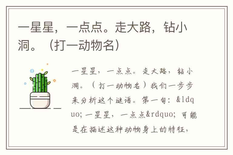 一星星,一点点。走大路,钻小洞。(打一动物名)