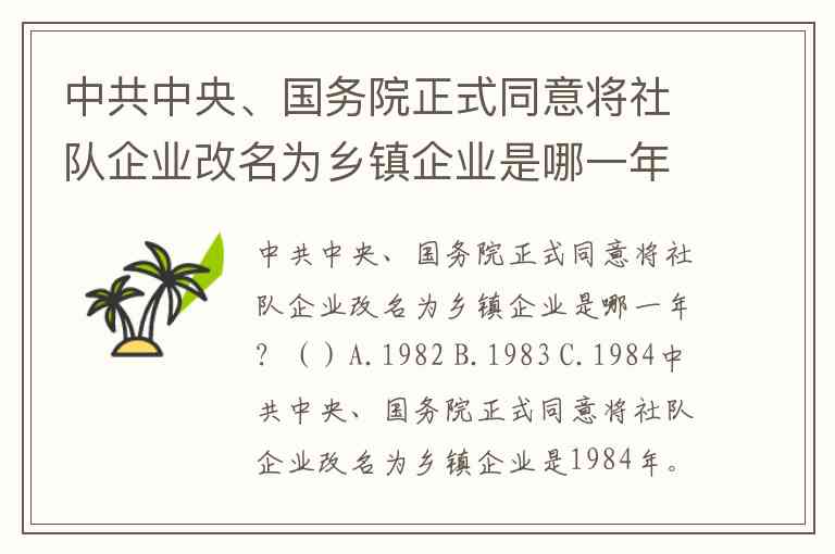 中共中央、国务院正式同意将社队企业改名为乡镇企业是哪一年?()A.1982 B.1983 C.1984