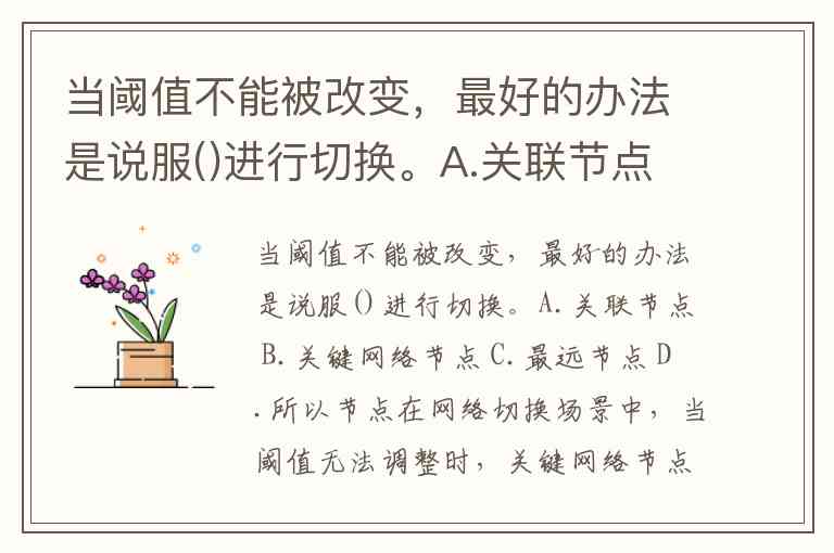 当阈值不能被改变,最好的办法是说服()进行切换。A.关联节点 B.关键网络节点 C.最远节点 D.所以节点