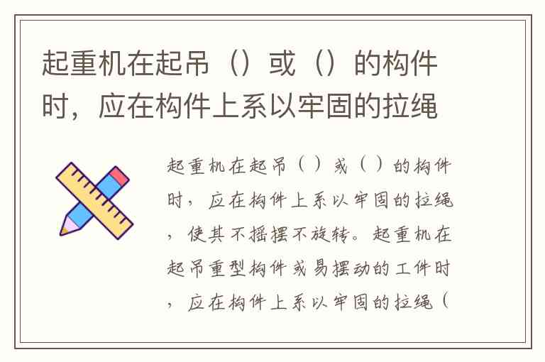 起重机在起吊重型构件或易摆动的工件时,应在构件上系以牢固的拉绳(也称溜绳),使其不摇摆不旋转。这一操作是起重吊装安全规范的核心要求,直接关系到施工安全与效率。
