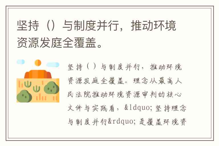 坚持()与制度并行,推动环境资源发庭全覆盖。
