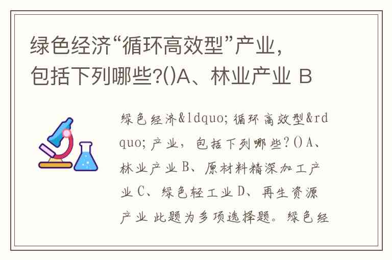绿色经济“循环高效型”产业,包括下列哪些?()A、林业产业 B、原材料精深加工产业 C、绿色轻工业 D、再生资源产业 此题为多项选择题。
