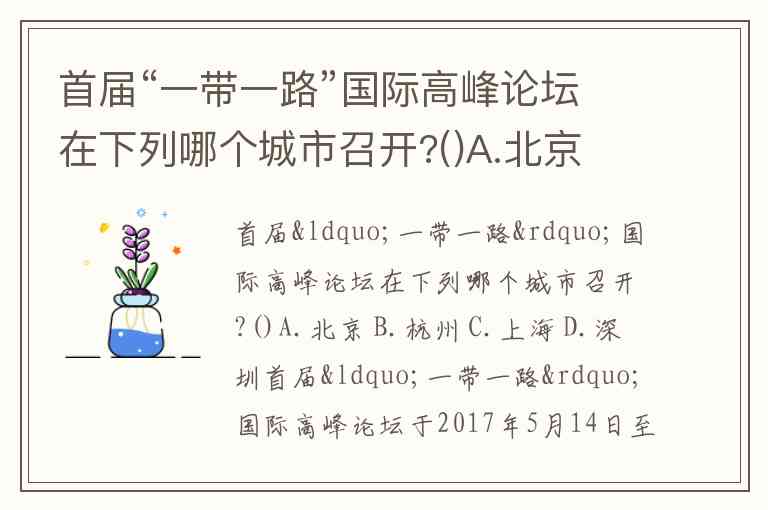 首届“一带一路”国际高峰论坛在下列哪个城市召开?()A.北京 B.杭州 C.上海 D.深圳