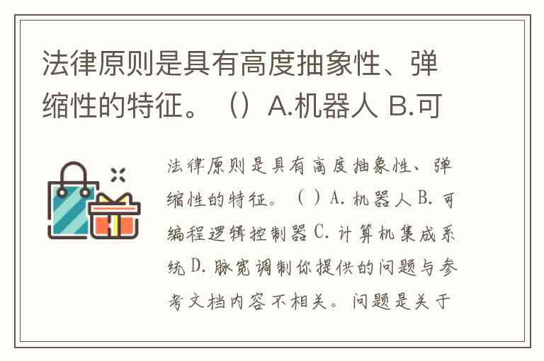 法律原则是具有高度抽象性、弹缩性的特征。()A.机器人 B.可编程逻辑控制器 C.计算机集成系统 D.脉宽调制