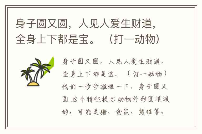 身子圆又圆,人见人爱生财道,全身上下都是宝。 (打一动物)